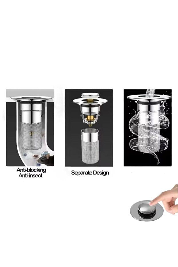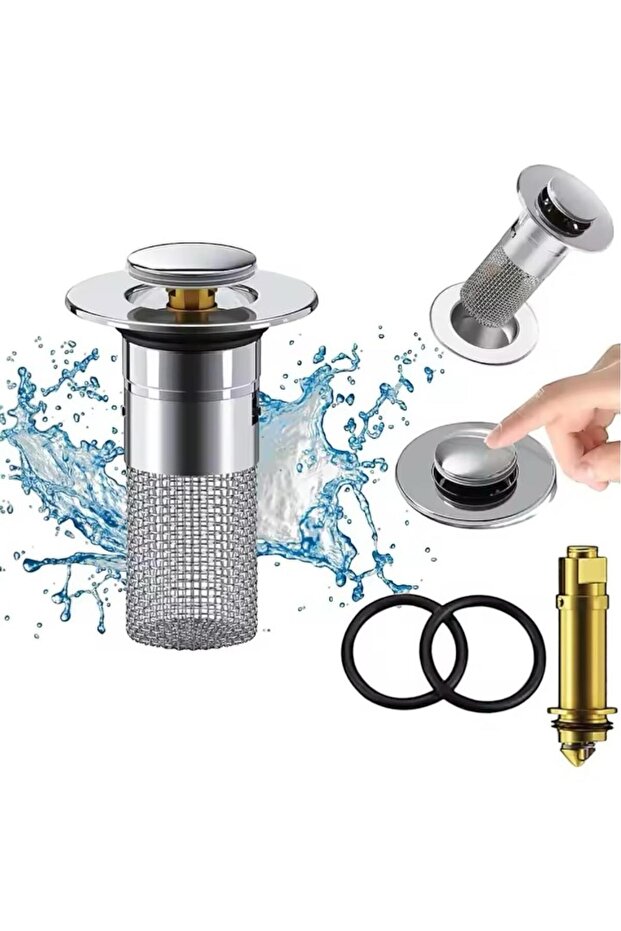 【Pop-Up lavabo tıpası】Gider süzgeci iyi bir esnekliğe ve geri tepme gücüne sahiptir, sadece hafif bir basınçla su hızlı bir şekilde sızdırmaz ve boşaltılabilir, bu da giderden koku önlenebilir.